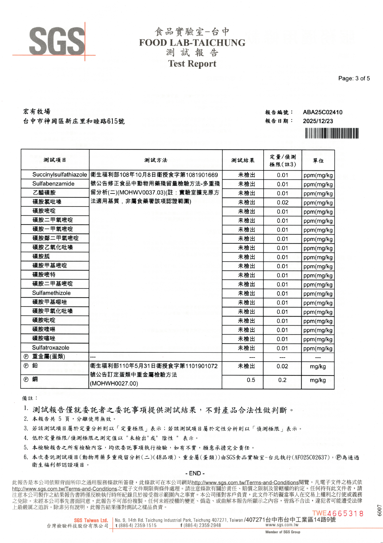 檢驗:各種相關檢驗均合格,無農藥禁藥殘留