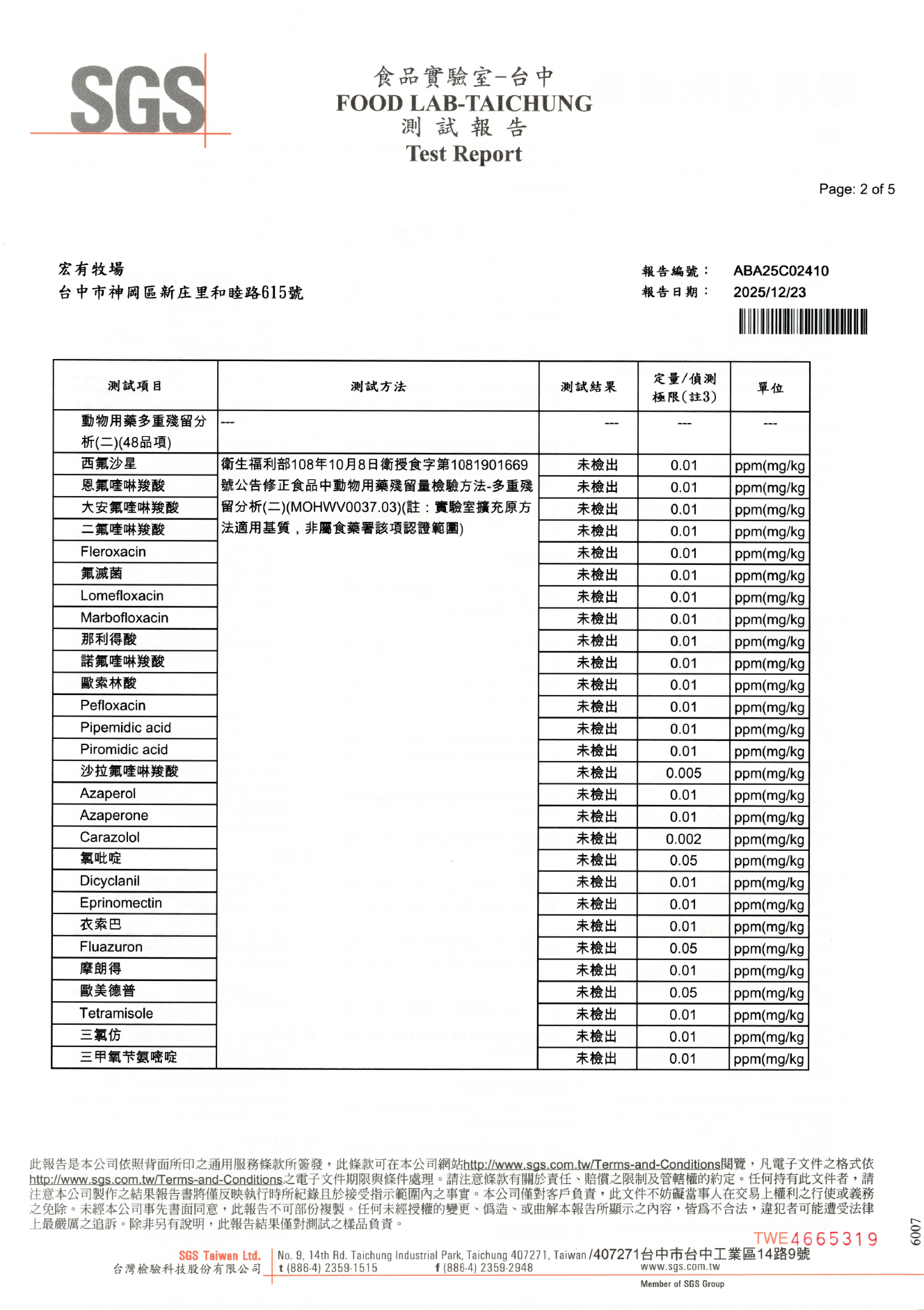 檢驗:各種相關檢驗均合格,無農藥禁藥殘留